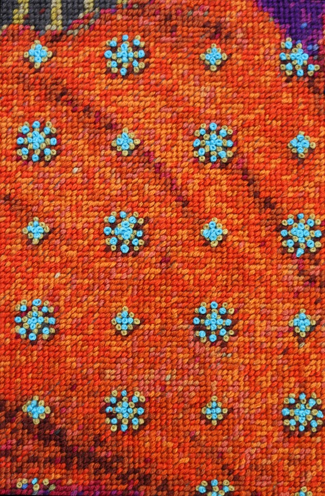 Textiles are constructed surfaces intended by humans. Beyond meeting basic needs, their primary purpose has always been to express the beauty and power of the wearer. For me, textiles are undoubtedly an art medium, communicating through their own vocabulary. I aim to demonstrate that one can eloquently express intangible emotions, transcending practical uses, even within the perceived rigidity of certain textile techniques like cross-stitch, often dismissed as mere pixel art.